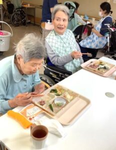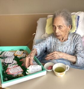 2F特養☆敬老会☆R07.09.15(月) 2025年10月22日 敬老の日のお祝いをしました❀ 今年は7名の方が表彰されました 表彰式の後は「カンパーイ」 豪華松花堂弁当をいただきました 表彰されなかった皆様にも 職員手作りのお守りをプレゼント♡ どれにしようか? 好みの模様を探しています(*´ω`*) ますますお元気で目指せ100歳❣