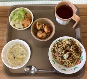 職員手作りのたこ焼き・焼きそば・さつまいもご飯に