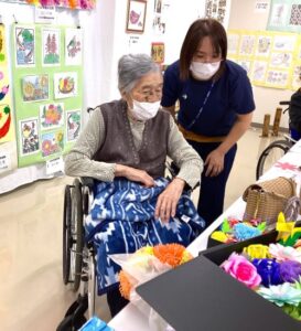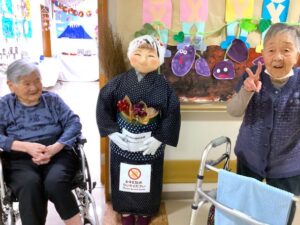 2F特養☆芸術祭☆R07.10月 2025年11月20日 芸術の秋🖌️ 法人の色々な施設から集めた作品を ほくほくの里で展示しました 展示場いっぱいに飾ってある作品に 皆様、関心してみています 素敵な笑顔でお出迎え 本物みたいな人形と「はい、チーズ」 お侍さんや恐竜のかぶり物で 大変身✨ 似合ってる?(⋈◍>◡<◍)。✧♡